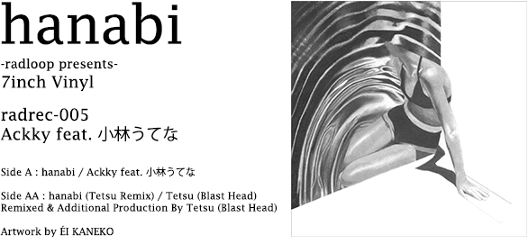 前作 "painting in november" が発売後瞬く間に完売となり、新たな層からの評価も獲得したAckkyの新作が7inch Vinyl でリリース。先日初のソロ・アルバムをリリースし、若き実力派バンド D.A.N. のサポート・メンバーとしても精力的に活動する、小林うてなの幻想的なスティールパンに、シンセ音が心地よく溶け込むA面の hanabiは、ここ数年のAmbient~Balearicの再評価に呼応する、エキゾチッ クでドリーミーなアンビエント・トラック。